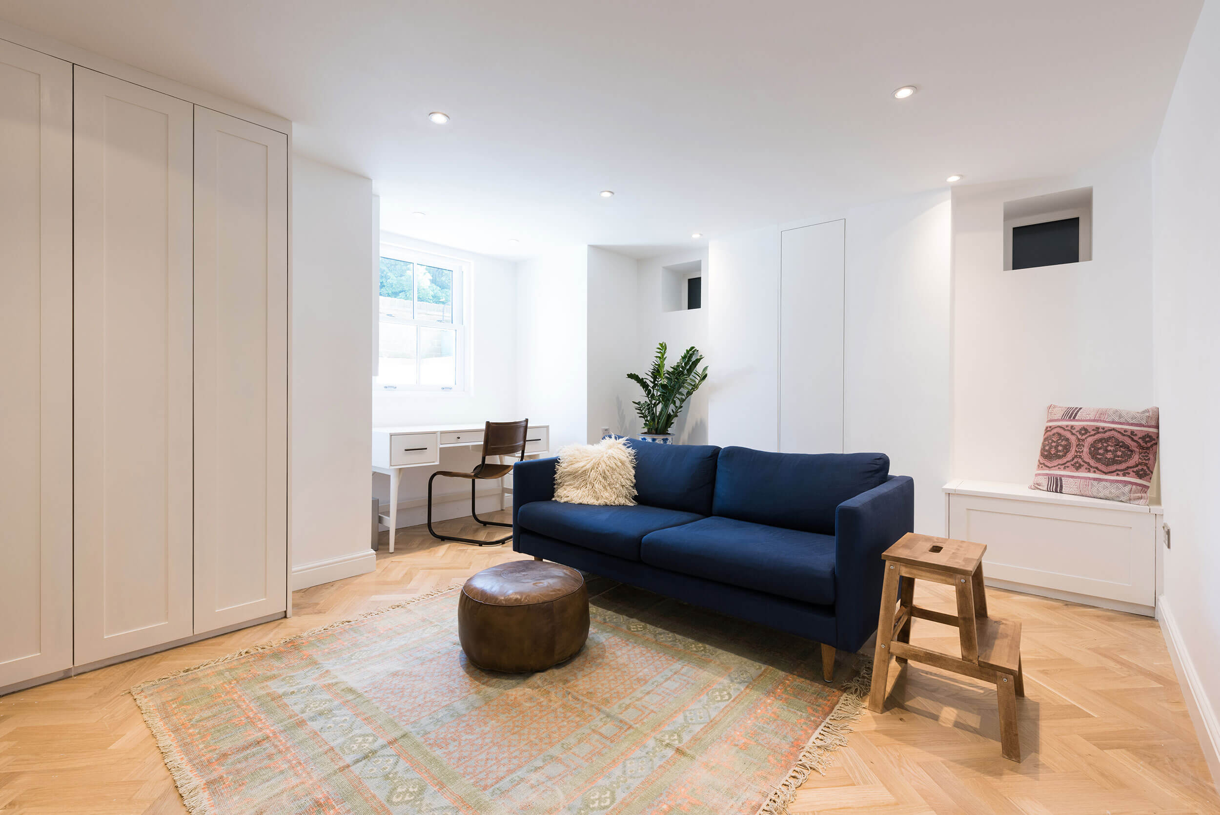 We transformed the room from an uninhabitable, damp, dark space with an uneven concrete floor to a dry, bright, flexible room. Opening up a lightwell provides plenty of natural light and an airy feel, and new timber stairs now allow easy access from the rest of the house.