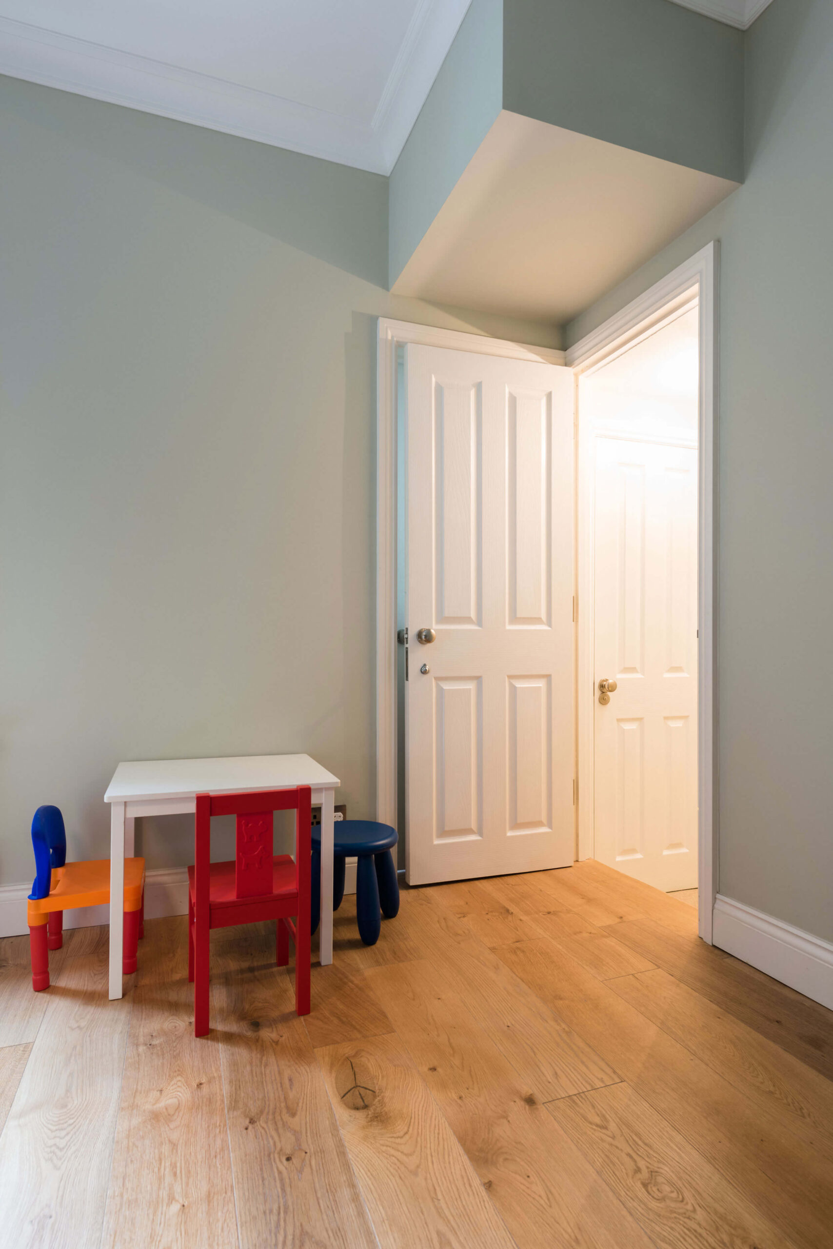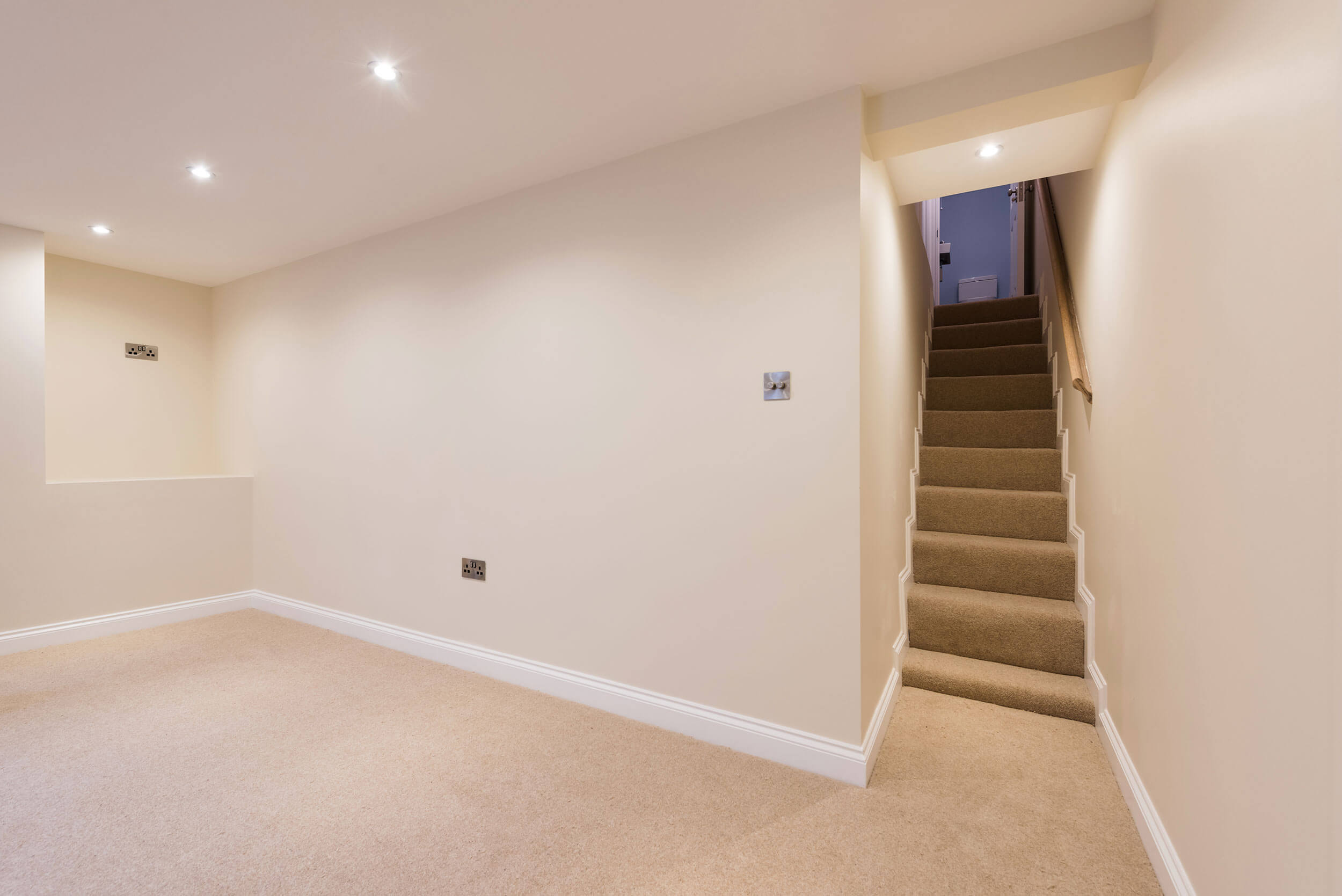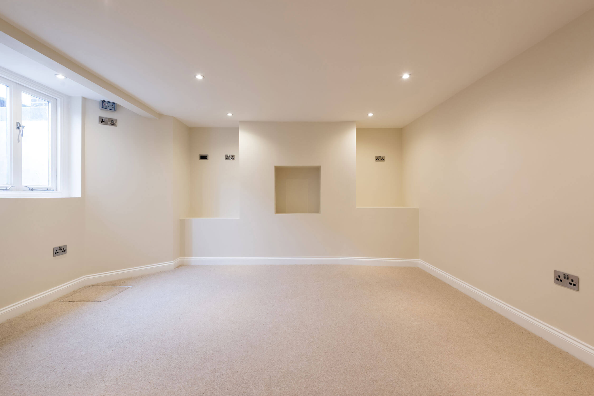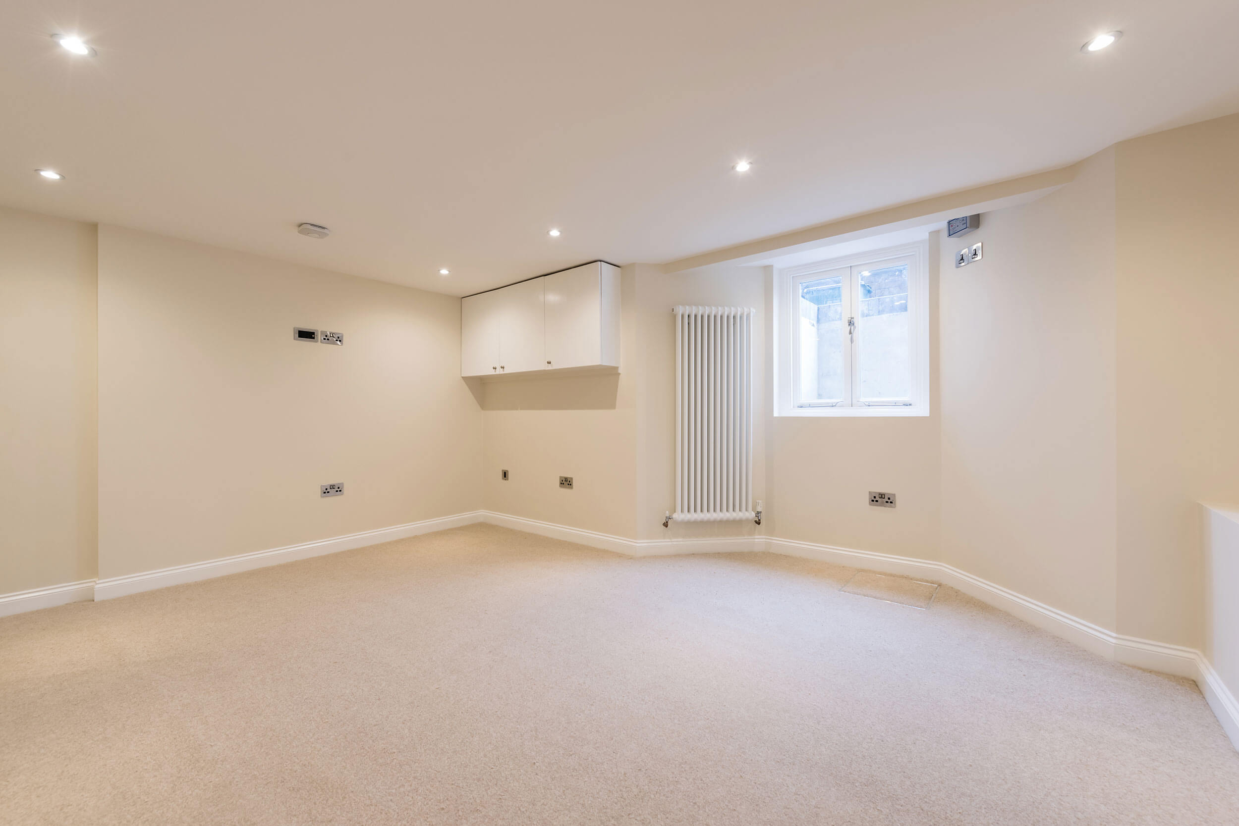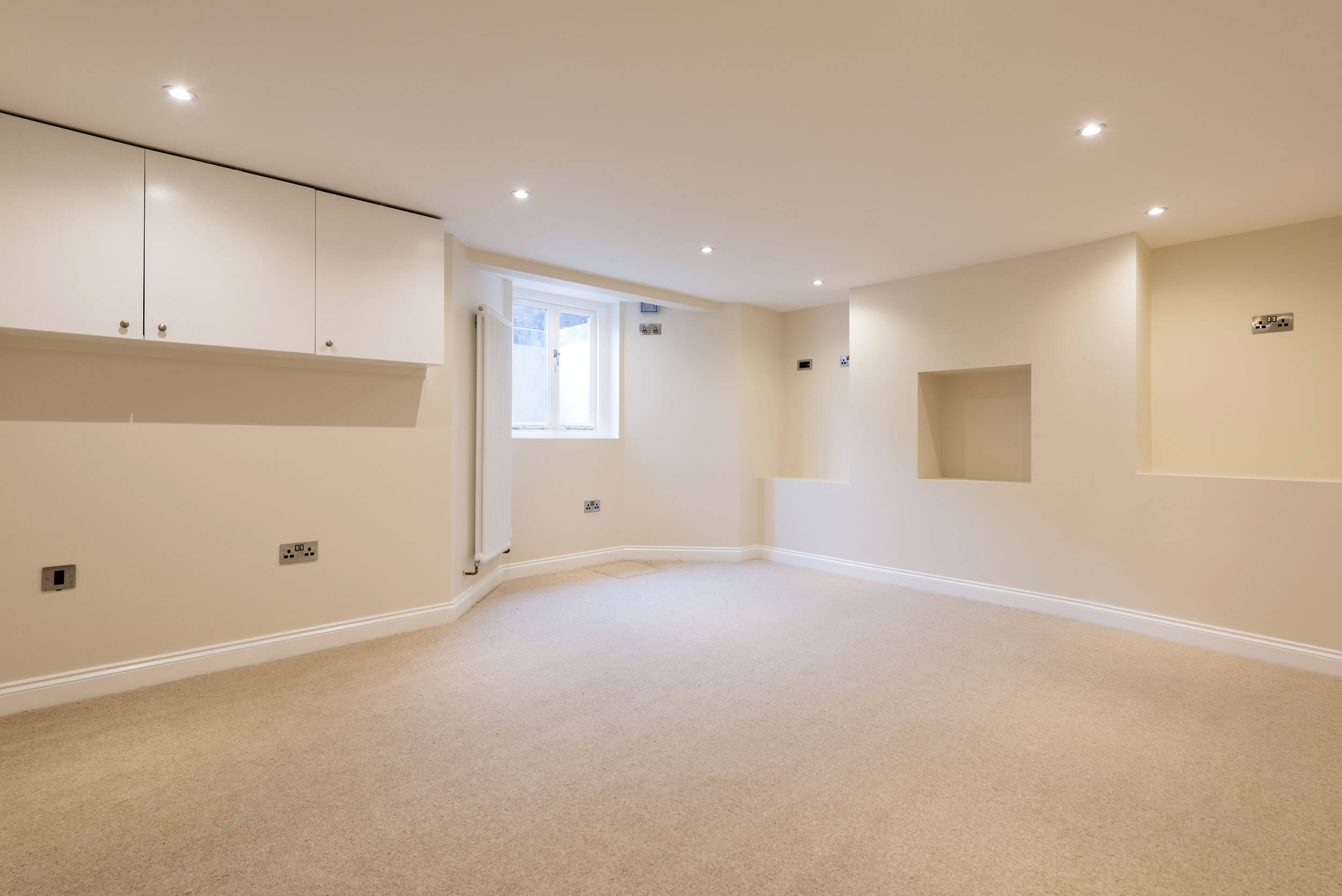 The addition of a lining wall to the perimeter of the cellar contained a waterproofed membrane and insulation keeping the living space warm and dry, whilst the addition of contemporary lighting creating a bright and welcoming environment.